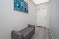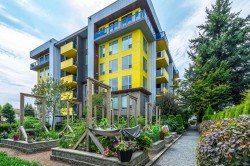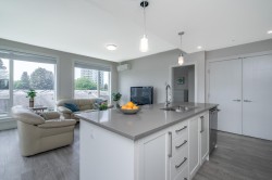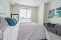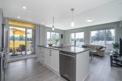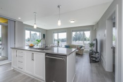 Be impressed as you walk into this 2 bed/2 bath corner unit beaming with natural light! This home offers large windows, A/C, side-by-side washer & dryer, and an efficient floor plan with functionality & comfort in mind. Kitchen & living area flow effortlessly, making this a perfect home for both living & entertaining. KitchenAid appliances, quartz countertops, island, gas oven, & abundance of cabinets. The ensuite includes a walk-in closet & double vanities. Truly a special condo that sits in a great walkable area, close to schools, shops, restaurants, parks & recreation. Stay fit and healthy with a daily walk around Mill Lake! 2 underground parking 1 storage. 2 pets allowed.