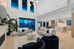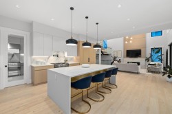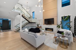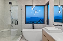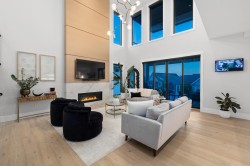 Stunning executive home by award winning Palermo Homes offering nearly 4,700 sqft of luxury living w/6 bd, 5 bt & sweeping mountain views. Finished w/Fond Du Lac Adera stone, Longboard metal siding, stamped concrete patios, and Clopay garage doors. The designer kitch feat Old World real wood cabinetry,Caesarstone quartz counters,Blanco granite sinks,Fisher & Paykel appliances & Calcutta Gold backsplash. Interior upgrades include Kentwood hardwood, Italian tile, Riobel&Brizo fixtures, engineered floating stairs, glass railings,& motorized blackout shades.Tech-ready w/HK Vision 4K cameras, Ring doorbell, built-in Bluetooth speakers,EV+hot tub wiring.Lower level includes a spacious rec/bar area,4th bd,and private-entry in-law space w/2 bds and sep laundry.