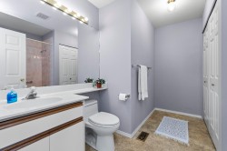 END UNIT! Comfortable, spacious 55+ living. Kingsview Estates is a highly sought-after gated community. Rancher with 2 bedrooms and 2 bathrooms upstairs, formal living/dining rooms with cozy gas fireplace and deck, eat-in kitchen and laundry area. The basement features a spacious family room & flex area with fireplace that walks out to a patio overlooking manicured grounds. Also you'll find a perfect bedroom and bathroom for guests. The unfinished area has a huge workshop. Single garage and guest parking. A/C to stay cool in the summer. Pex plumbing. Large club house for meetings, recreation and events. Located in great area close to shopping, restaurants and recreation facilities.