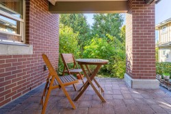 Welcome to Macpherson Walk East - one of Burnaby's most sought-after communities! This rarely available ground-level corner 2 bed 2 bath home offers a perfect blend of comfort, privacy, and tranquility. Featuring nearly 100sf of patio space, surrounded by lush greenery and mature trees, it's an ideal spot for morning coffee or weekend relaxation. You'll find a well-designed open layout with separated bedrooms for privacy, spacious primary suite with dual sinks, a soaker tub, and a shower stall. This home enjoys natural light from multiple exposures and sits on the quiet side away from the Skytrain. Complex is pet-friendly, a beautifully maintained development with landscaped grounds, walk paths and community feel. Conveniently located near Metrotown, Royal Oak Skytrain, schools and parks.