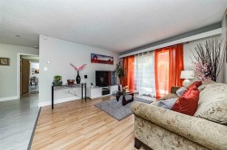 South facing ground floor unit w/ a private patio on the courtyard quiet side of the building at Barclay Woods, a 5 acre property in the Cariboo area of North Burnaby. This spacious 1 bed unit has a beautiful kitchen w/ shaker style cabinets, granite countertops, stainless-steel appliances & tile floors. Laminate in the living rm & bedroom. Bathroom also has shaker style cabinets & granite countertops. Amenities include an exercise center & a renovated social room for your larger gatherings. Pets allowed, either 1 cat or 1 dog. Comes w/ a storage locker & 1 underbuilding parking + additional spots available for a fee. Shared laundry on each floor w/ new machines. Located within walking distance to the Lougheed Mall & the SkyTrain. SFU, Hwy 1 & Burnaby Lake minutes away.