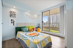 Stunning NE-corner 2 bed, 2 bath condo in Carlton On The Park with gorgeous mountain and city views. Fully renovated in 2021 with $150K in upgrades. Features include wide plank vinyl flooring, quartz counters, tile backsplash, soft-close cabinets, built-in pantry, Frigidaire Professional appliances, LG ThinQ washer/dryer, and Google Home–controlled lighting. Spacious open layout with large kitchen, dining, and living areas. Master has walk-in closet. Resort-style amenities: pool, sauna, hot tub, tennis court, gym, library, party room, and live-in caretaker. Unbeatable location—5 mins to Patterson & Metrotown SkyTrain, Central Park, and steps to Metrotown, T&T, and top eats.