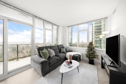 BEAUTIFUL & SPACIOUS 2 BEDROOMS CORNER UNIT AT KINGSCROSSING 3 BY CRESSY. Southeast facing with panoramic mountains, water, and city view. Huge covered balcony is perfect for spacious outdoor day to day living or entertaining! Bright and spacious layout with ton of natural light huge windows. Open concept floorplan with 9'ft ceiling, A/C, spacious bedrooms, and spa like bathrooms. Feature Cressy Kitchen includes custom feeling cabinetry with the most intelligent use of storage space, European appliances, and exquisite stone countertops. Amenities include sports court, fitness center, sauna/steam room, rooftop garden, lounge and concierge. Convenient to Highgate Shopping Center, Edmonds Community Centre, skytrain, shops & restaurants. Minutes driving to Metrotown, Deer Lake and Schools.