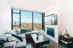 Jaw Dropping North Facing MOUNTAIN VIEW w/ 9ft ceilings & picturesque floor to ceiling windows! A sizeable 1 bed condo that makes you feel like you're on top of the world! And you're next door to Edmonds Skytrain making it a great purchase to move into or rent out as an income property. Other Features: a gourmet kitchen, gas stove, stainless steel appliances, granite countertops, refinished cabinets & laminate flooring. Enjoy the view inside with a cozy gas fireplace. Or outside on your private & spacious 100sqft patio. Well run & proactive strata w/ caretaker & excellent amenities. Immediate skytrain access to get around the city, or keep it close surrounded by parks, shops, recreation, restaurants, schools & more a short walk away! 1 Parking/Storage. 2 Pets/Rentals allowed.