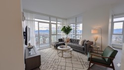 This exceptional 2 Bed, 2 Bath corner unit on the 50th floor at 4670 Assembly Way offers an unparalleled viewing experience. Step out onto your expansive wrap-around balcony and immerse yourself in breathtaking, panoramic views that stretch across the majestic North Shore Mountains to a serene lake and the distant ocean. This high-rise vantage point ensures maximum natural light and total privacy, making every moment spectacular. Residents enjoy premium building amenities including a state-of-the-art gym with steam and sauna rooms, a vibrant party room, a tranquil private garden area, and a handy guest suite. The unit comes complete with 1 secure parking stall and 1 dedicated storage locker. Some photos have been virtually staged to showcase the unit's potential. Book your private showing.