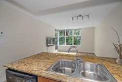 Welcome to Novo 2 in UniverCity! This beautiful 2 bed + Den, 1 bath unit is ready for you to move in! 804 sqft of living space and an excellent layout! Open concept kitchen and living room with granite counters and stainless appliances! Large and bright primary bedroom! Good size full bathroom + in suite laundry. Updated flooring throughout! Great size balcony with excellent view in fall/winter! Well run strata with a healthy contingency! All of this in a great location walking distance to SFU and everything UniverCity has to offer! Hiking trails, grocery, restaurants, coffee shops, shopping, and more!