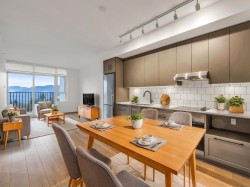 Welcome to a modern 1-bedroom home at Hamilton by MOSAIC ! This home shines with a bright and stylish interior, featuring sleek contemporary flat panel cabinetry, elegant quartz countertops, stainless steel appliances and laminate flooring. Prime SFU location : just a short walk away from shops, restaurants, schools, childcare and all the amenities at UniverCity, offering a convenient and vibrant living. Surrounded by Burnaby Mountain Conservation Area with scenic trails for hiking and biking. BONUS: 1 parking stall & 1 locker. Open House: Dec 21 (Sun) 2-4 pm.