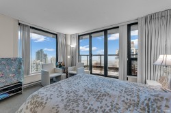 "Arcadia East" by noted Bosa – Stunning Penthouse with 270° Views! This exceptional penthouse offers unobstructed North, East, and South views with an ideal layout featuring 3 bedrooms, 2 baths, 2 balconies, a cozy fireplace, 1 locker and Two Parking Spots. The gourmet kitchen boasts granite countertops and high-end stainless steel appliances, while hardwood floors enhance the living room, dining area, and hallway. The building offers great amenities including a fitness center, yoga room, social lounge, and secure parkings. Located steps away from, restaurants, Save-On-Foods, Shoppers, Starbucks, BC Liquor, Community Center, Library, cafes, all level of banks and transit options and more. Conveniently located near Metrotown. Open House: Sat (Sep 27) 2:30-4pm