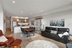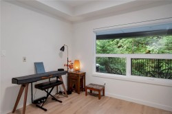 This Omnia unit blends comfort and style with ocean and nature views—and it’s ready to move in. The spacious primary bedroom offers a walk-in closet and a spa-inspired ensuite featuring heated floor tile, a double vanity, and a herringbone-tiled shower. A second bedroom overlooks peaceful green space, paired with a full bath and relaxing tub—ideal for family or guests. A bright den makes a perfect office, reading nook, or creative space.Everyday conveniences include in-unit laundry, undercover parking, an EV charger, and a pet- and rental-friendly building. Stay comfortable year-round with a heat pump for heating and cooling. From the front deck, enjoy sweeping ocean views and passing cruise ships; from the back, take in the quiet rhythm of nature. Whether a year-round retreat or summer escape, this move-in-ready home is a rare blend of luxury, privacy, and West Coast living.