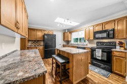 Attractive 3 bdrm rancher in Sardis loaded with extras! Features lots of oak cupboards with sliding drawers, island & skylight in kitchen, oak baseboards, built-in hutch area in dining room, gas fireplace in living room, 1.5 bath. Double garage features 2-post lift for the tree shade DIYers, RV parking on the side. Wheelchair accessible.