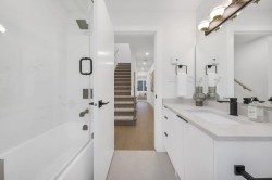 Experience the elegance of this high-quality, new-built 4 bed/3.5 bath, 2150sq ft triplex. This sunny, south-facing home offers 3 levels of well-designed luxury living on Smith Ave, Coquitlam. The main floor features hardwood, 9 ft ceilings, open living/dining, a high-end kitchen with quartz counters, pantry, and a large balcony. The second level offers a primary bedroom with luxe ensuite + 2 bedrooms and a full bath. The top level includes a family/office space + 1 bedroom, and a full bath. Tasteful finishes: carpet, custom cabinetry, modern lighting, Fisher & Paykel appliances. Heating/AC heat pump + electric baseboard. Huge Crawl space storage. 2 parking w/ EV outlet. Steps to Burquitlam SkyTrain. 2/5/10 Yrs Warranty OPEN HOUSE SATURDAY DEC 20TH 2:00 - 4:00 PM