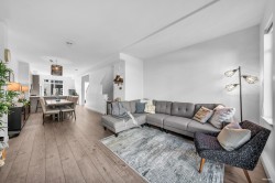 Bright 3-bed townhome overlooking greenbelt at Rocklin by Woodridge homes. Lovingly cared for by original owners with 9’ ceilings on every floor. Main floor offers large living & dining areas, chef’s kitchen & powder room. Upper floor features 3 bedrooms, 10’8” vaulted ceilings in primary bedroom overlooking private yard, spa-like ensuite with dual vanities, & full size laundry closet w/ additional shelves. 2-car XL tandem garage with lots of storage options. Fenced in 360sqft backyard overlooking greenbelt with built-in gas bib for summer BBQs! Located on the quietest row within the complex with no-through road but easy access to Rocklin St. Walk to daycare, Victoria Park. Amazing family neighborhood w/ upcoming comm centre, pool, library & schools.