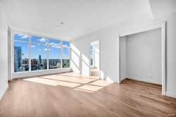 Luxury living with UNOBSTRUCTED VIEW at Smith & Farrow by Boffo in West Coquitlam. One block to BURQUITLAM STATION, minutes to SFU, restaurants, shopping, and parks. 27th floor 952 SF of interior space with 9’ ceilings, this 2 bed + flex home offers abundant natural light with SOUTH-FACING windows overlooking the Fraser River. Extra-large kitchen features full-size 30” integrated Fisher & Paykel / Bosch appliance package, brilliant storage solutions, and waterfall island with cabinetry drawers. All bedrooms include built-in wardrobe system and European wide-plank flooring. Entertain in the comfort of AC indoors or outside on the 132sqft covered balcony with gas outlet. Extensive amenities include concierge, outdoor pool, hot tub, rooftop indoor/outdoor lounge, gym, yoga studio and more!
