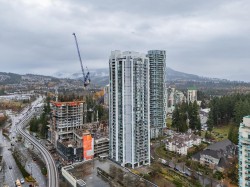 Welcome to Obelisk! This stunning 971 sq.ft. southwest-facing corner unit showcases sweeping, unobstructed views of SFU Mountain and Coquitlam Centre. Peaceful exposure, well away from SkyTrain noise and nearby development. Bright, airy layout with 2 bedrooms, a versatile den (easily turned into 3rd bedroom) & 2 full bathrooms. Features an open living/dining area, electric fireplace, updated 12mm laminate flooring, and fresh paint. Exceptional walkable location near SkyTrain, Coquitlam Centre, Henderson Mall, Library, West Coast Express, Douglas College, Pinetree Secondary, Glen Elementary, Lafarge Lake, and the Aquatic Centre. Amenities include gym, dry sauna, party lounge, bike storage, EV charging, and guest parking. Open house 12-1:30pm Dec 21