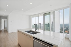 Soaring above Coquitlam in Clarke+Como, this stunning corner 42nd flr. skyhome offers sweeping 270 degree views of mtns, City & beyond. 2 beds, 2 baths & an expansive floor plan w/ floor to ceiling windows that fill the space with natural light. Sleek modern kitchen boasts s/s appliances, quartz counters, gas cooktop, A/C & ample storage. Relax or entertain on the spacious 210sf balcony while enjoying breathtaking sunsets. Incredible building amenities include concierge, gym, basketball court, karaoke room, guest suites, sky lounge & so much more. Steps to Burquitlam Skytrain, shops, cafes & parks. 2 parking(1 EV) & storage! Incredible opportunity to own one of area's most coveted homes!