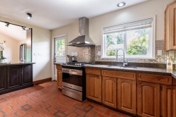 Flexible layout over 2800 sqft offers plenty of space for family living, including the option of a main floor primary, seperate suite or home business. Spacious & bright, this beautifully updated home sits on a large 9150 sqft (75x120) ravine lot. The unique architecture offers a European feel, with vaulted ceilings, archways, skylights, and elegant design throughout.Enjoy a resort-like backyard with sunny south exposure, multiple decks, patios, courtyard & views of the Fraser River & North Shore Mountains.The kitchen features oak cabinetry, granite counters,SS appliances,& gas stove.Updates include a new deck, high efficiency furnace, hot water on demand, a metal roof & a newly built large sundeck for summer fun-BBQ!Close to bus,15 minutes to Richmond.