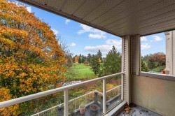 Priced almost $200,000 below its assessed value of $889,000, this exquisite 2-bedroom plus den condominium—spanning a generous 1,386 square feet—presents breathtaking vistas of the prestigious Beach Grove Golf Course. The functional kitchen and elegant dining room flow seamlessly into the living area, which opens onto a private deck offering serene golf course panoramas. The primary suite features a luxurious 5-piece ensuite with a deep soaker tub, glass-enclosed shower, and dual vanities. The second bedroom enjoys its own secluded deck, complemented by a full bath just steps away. The versatile den is ideally suited as a home office or personal fitness retreat. Nestled on a tranquil street in a meticulously maintained complex. 1 parking & 1 locker included.