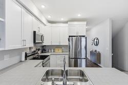 Beautifully maintained end-unit townhouse in Canyon Gate, offering stunning river valley and mountain views from multiple levels. The welcoming main entry provides plenty of space, with a convenient bedroom on this level, perfect for guests, a home office, or flexible family use. The oversized single garage enters through a mudroom that connects directly to the foyer for everyday convenience. Up one level, the bright and open kitchen and dining area flows onto a south-facing patio, ideal for morning coffee or sunny afternoon relaxation. The kitchen features a custom upgrade by Kitchen Studio completed in 2024, thoughtfully designed with a built-in coffee bar, wine fridge, and office nook—blending function and style for modern living. The living room features large picture windows that frame the sweeping northern views, making the space feel open and airy. A generous 2-piece bathroom completes this floor. The top level includes three bedrooms (note: one does not have a closet), along with a laundry closet and a 4-piece main bathroom. The primary bedroom offers a 3-piece ensuite and great closet space. Additional features include all appliances, central A/C, and window coverings. This home is located just steps from a park, close to transit, walking trails, and the Juniper Market, and only minutes from all major Kamloops amenities. Parking is plentiful with one garage space, one driveway spot, plus additional parking directly in front of the unit.
