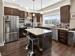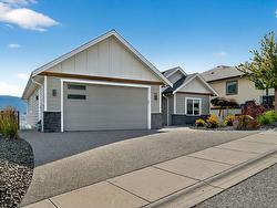 Situated in the sought-after Black Mountain community, this beautifully crafted four bedroom, four bathroom rancher walkout captures sweeping valley and mountain views while offering the convenience of a legal suite. The main level is bright and inviting with an open concept design that blends a kitchen with granite countertops and SS appliances, a spacious dining area, and a comfortable living room ideal for gatherings. The primary suite is a private retreat with a walk-in closet and spa inspired ensuite. Also, on the main is a second bedroom, a large covered patio, full bath, laundry, and a heated garage. The walkout lower level features nearly nine foot ceilings, and a well designed legal suite, complete with its own entrance, laundry, private covered patio and mountain views. Additional highlights include updated flooring, ceiling speakers, Ethernet connectivity, abundant storage throughout, and a professionally zero scaped yard designed for low maintenance living. Just minutes from Black Mountain Golf Club, parks, trails, shopping, and Kelowna International Airport, this home offers the perfect balance of comfort, convenience, and natural beauty.
