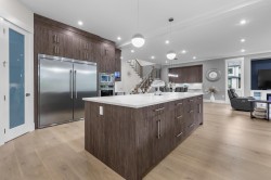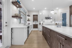 Welcome to resort style living on a quiet Brookswood street.This custom estate has 6640 sqft of living space on a large corner lot. Main floor features soaring ceilings, 2 fireplaces, oak floors, a main floor bedroom with full bath, chef’s kitchen with giant island and spice kitchen. A large covered deck off the great room leads to a beautiful south facing backyard with a saltwater pool, perfect for entertaining! Upstairs has 4 large bedrooms, all with ensuites, including two primary suites, a spa-like bathroom, laundry and a huge sitting area. Downstairs features a 2 bedroom suite, media room, bar and ability to add a second one bedroom suite. With A/C, automated irrigation, smart systems and parking for 6, this home is where everyday life will feel like you’re on a permanent vacation!