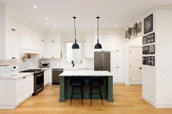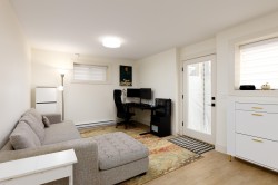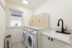 Modern and stylish, this well-built by Lanstone & Wesmont home features top-quality finishes and appliances. Air conditioned. Located on a corner lot, it offers extra space, added privacy, and extra windows. The open-concept main floor boasts 10' ceilings, oversized windows, crown moulding. Wide plank engineered hardwood throughout main and upper levels. Oversized gourmet kitchen with a large island. Cozy backayrd with grass, plants, flowers offers a concrete patio with BBQ gas outlet off the kitchen and living room. 2-bedroom legal suite with an in-suite laundry; durable vinyl planks flooring in the basement living areas. Bonus rec room in the basement. 2 car garage, 1 parking spot + street parking. Custom mudroom when you enter the house from the garage. Open house Sun Oct 19 2-4 pm.