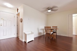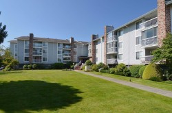 HERITAGE MANOR - Welcome Home! Bright, spacious 2 bedroom, 2 full bathroom condo in Langley City. Open concept layout that flows with day to day living. Large living room with gas fireplace opens up to park views from lovely patio - perfect for morning coffee or afternoon tea. Dining flows from kitchen which features new stove (2025) and new refrigerator (2025). Newer laminate flooring and paint throughout. Generously sized bedrooms are on opposite sides of the home for privacy and comfort. Ample storage areas off of deck and in laundry room. New hot water tank (2024). Close to shops, restaurants, parks and transit. 55+ community. Do not miss out!