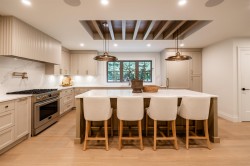 Stunning 4,259sqft home w/primary on main! Updated & modernized top to bottom by Converse Custom Homes. Designed by Sucasa & Centre Stage Design w/incredible style & attn to detail. Offering 6bdrms + 5baths. Designed for year round entertaining. Open plan ktchn w/Italian appliances, lrg island, dining area & great rm. Upper flr has 3bdrms & 2baths. Downstairs is daylight & open w/2 bdrms, 1 bath, wet bar, & flex space-easily converted to 2bdrm suite perfect for family. Your completely private yard has a 20x40 heated inground pool, covered decks & expansive patios-fully fenced. Also heat pump, fully irrigated, built in speakers & cameras installed. Legally build a second home for family or shop w/ legal coach house - ask us how! No GST. **Public Open House November 30 from 2:00 - 4:00 PM**