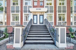 TOWNHOME FEEL AT CONDO PRICE! Experience the best of both worlds with this townhome-style 1 bed + den condo, with your own private entrance & no hallways or elevators to worry about! This bright, functional layout features a kitchen with a breakfast bar, perfect for meals or entertaining. Enjoy a southerly exposed private patio opening to a gated courtyard, plus underground parking, an on-site gym, & affordable strata fees. The spacious primary bedroom fits a king bed, & the location is unbeatable - Starbucks, Save-On-Foods, and Shoppers Drug Mart are across the street - no car needed, & Willowbrook Mall is only 5 mins out. With easy access to transit & schools, & the future SkyTrain station coming nearby, it’s a smart investment too! Quick possession available.