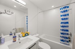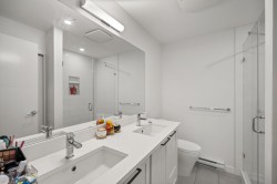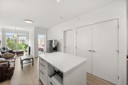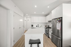 Penthouse living with peaceful privacy! Experience the perfect blend of luxury and tranquility in this top-floor home. Why you'll love it: prime location - conveniently close to places of worship, top-rated schools, shopping, dining, parks, and future SkyTrain access. Quick connections to major routes make commuting a breeze. Stylish interiors - enjoy an open-concept layout with sleek laminate flooring, thoughtfully designed for both comfort and entertaining. Serene surroundings - backing onto lush green space, this penthouse offers a private, peaceful retreat from city life. Resort-style amenities - includes a guest suite, expansive barbecue area, fully equipped gym, yoga space, and secure bike storage. Modern & Meticulous - Built in 2021 and maintained in pristine condition !