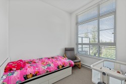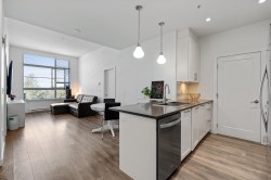 Top floor unit at The WEX! This 2 bed, 2 bath + den home offers a functional layout with modern design. Features a stylish island kitchen with quartz counters, floor-to-ceiling cabinets & S/S appliances, spacious living/dining area—ideal for entertaining. Large primary bedroom with walk-in shower. 1 parking and 1 storage locker included. Steps to Willoughby Town Centre, transit, parks & shops.