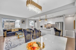 Welcome to Provenance - built in 2021 by the very reputable Polygon. This 1320 sq/ft bed, 2.5 bath, beautifully designed South facing end unit townhouse has a fantastic open floor plan with tons of windows & 9ft ceilings. Dream kitchen offers a huge island, SS appliances, stone counters & ample cabinet space. Walk out to the covered patio & fully fenced back yard great for pets & kids. Upstairs you will find a large master with spa like en suite, double sinks & walk in shower, 2 more bedrooms, family bath &laundry with washer dryer. Double garage & powder on the main. Excellent facilities, including pool, hot tub, gym & guest suite at the Provenance Club. Close to schools, parks, shopping & transit