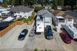 Very well kept home in a central location close to all schools and shopping. This home features a low maintenance yard with good back lane access and lots of RV parking space in front of the double garage. The main floor upstairs has been tastefully updated and is bright and open, the living room faces south with a view of Mt. Baker and the same with the deck area next to it. The Ensuite bathroom has just been remodeled too. The basement suite has its own outside door and is well laid out with the shared laundry conveniently located for easy access for both families. This home is easy to show, have your realtor book it! Some pictures have been digitally altered to remove clutter. OPEN HOUSE SAT December 22, 1-3