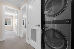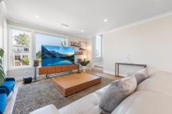 Step into this stunning, immaculate one-owner duplex—over 1850 sqft of luxurious living, crafted for families who love to entertain and unwind. Host unforgettable gatherings in your open-concept main floor, framed by soaring ceilings and a chef’s kitchen with a grand island, premium Fisher & Paykel appliances, and a powerful 6-burner gas stove. Relax in three spacious bedrooms, each with blackout blinds for perfect rest. Savor morning coffee on sun-kissed balconies or BBQs in your private front and side yards. Featuring A/C, radiant in-floor heating, a built-in espresso machine, security system, custom finishes, and four parking spots with EV charging—this showpiece is ready for you. Don’t miss it!