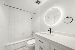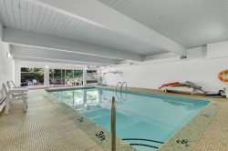 Beautifully renovated 2 bed 2 bath 884 sf Corner Unit on a quiet street in a fantastic location in Uptown New West! Steps to shopping, restaurants, cafes & amenities on 6th St. Just a short walk to schools, Moody park & Queens Park, & easy access to transit. North East corner unit with a great floorplan, large living space & tons of natural light featuring wide plank laminate flooring, refinished kitchen cabinetry, updated bathrooms, 2 good sized bedrooms & a wrap around patio! Building has an indoor pool! 1 cat or dog allowed (max 25lbs).