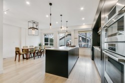 Step into a stunning kitchen blending modern design with high-end function. Designer fixtures from Buster+ Punch, elegant island pendants, Caosarstone countertops, and custom millwork create a refined space, complete with top-tier Bosch appliances. The Open-concept living area offers built-in storage for a clean, stylish look. Upstairs bathrooms feature in-floor heated tiles for year-round comfort. Car lovers will appreciate the polyaspartic-coated garage floor, custom cabinets, attic storage, workspace, and built-in Level 2 EV charger. Enjoy a private dock and landscaped yard perfect for entertaining. Extra storage. A large, temp-controlled crawlspace has you covered.