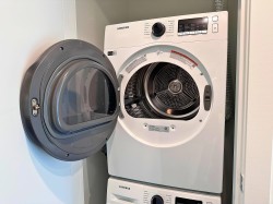 Welcome to 618 Carnarvon, a corner unit, one bedroom home in downtown New Westminster with A/C. West facing with welcoming warm afternoon sun through large windows and a private balcony. The open layout features a sleek kitchen with Bosch appliances, quartz countertops, and soft-close cabinets. Laminate flooring throughout the home, easy to keep clean. Perfect for first time buyers or investors seeking a low-maintenance home in a prime location. Storage locker included. Just a three-minute walk to Columbia and New Westminster SkyTrain stations, with Douglas College, cafés, restaurants, and riverside paths nearby. Residents enjoy access to a fitness centre, rooftop green space, kids' play area, and community lounge.