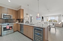 A rare opportunity to own a spacious 2-bedroom + 2-bathroom condo with a versatile den in the heart of Queensborough, New Westminster. This home offers stunning mountain and city views, providing a perfect balance of urban living and natural beauty. With 2 parking stalls and 1 storage locker, convenience is built in! Inside, the home features European-engineered hardwood floors (2019), a new hot water tank (2023), and upgraded appliances including washer & dryer (2020), gas stove, dishwasher, fridge, and microwave (2017). The thoughtful floorplan maximizes comfort and usability-ideal for families, professionals, or anyone seeking modern living in a growing riverside community. Located minutes from daycares, parks, shopping, restaurants, a casino and Queensborough Landing Outlet Mall.