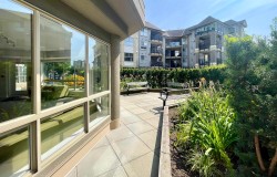 2 Large Dogs OK in your updated top floor one bedroom condo. This is a spacious covered balcony. The large living room has a gas fireplace and a nook for your computer / home office. There is easy to clean laminate flooring throughout. The kitchen has stainless appliances, granite counter tops and and breakfast bar. There is lots of space for dinner parties and you can easily have larger dining table. The master bedroom can fit a king sized bed and has a walk in closet. The cheater en-suite bathroom can be entered from the master bedroom or the foyer and features a larger soaker tub. 1 Secure Underground Parking, 1 Locker, bike room, gym, and beautifully landscaped garden courtyard. Bus Stop on 12th, steps to the New Westminster Quay, The Boardwalk, Shopping, Movie Theatres & SkyTrain.