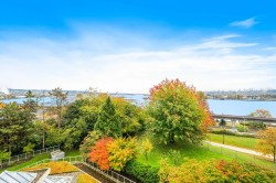 Stunning Fraser River & Mountain views from this beautifully renovated highly desirable '03' End Unit 2 bed 2 bath 1137 sf unit at Palace Quay! Fantastic open concept floorplan features solid engineered bamboo hardwood flooring, quartz counters, custom cabinetry, stainless steel appliances, 2 updated bathrooms. Large living/dining rooms w/ floor to ceiling windows showing off the beautiful view & an updated gas fireplace w/ custom marble surround. Good sized bedrooms incl spacious primary w/ walk through closets & 4 pce ensuite. Great location just a short walk to Glenbrook Ravine Park, Queens Park, Sapperton shopping, groceries, restaurants, cafes & skytrain. Building amenities: indoor pool/hot tub, gym. 1 parking & 1 storage!