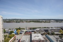 Incredible south-facing penthouse with stunning Fraser River views and 3 private balconies! This spacious 2 bed + den home features a bright open-concept layout, updated kitchen appliances, and new laminate flooring. The large den with gas fireplace offers flexible space or potential 3rd bedroom. Bedrooms are separated, with the primary featuring a full ensuite and brand new carpet. Enjoy resort-style amenities including an indoor pool, hot tub, gym, sauna, and rooftop terrace. Steps to shopping, dining, movie theatre, and direct SkyTrain access from the building’s underground parking!