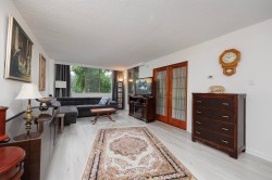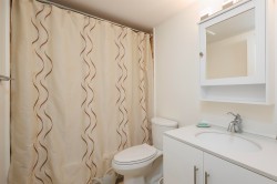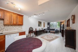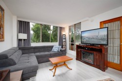 Just move in and enjoy this spacious 719 sq.ft. Condo with large covered balcony and quiet outlook to North Shore Mountain. The suit comes w/Recent Complete Renovation including: Brand New Kitchen Cabinet, Granite Countertop Stove, Fridge, Carpet, Tile Flooring inside & Balcony as well as freshly painted Walls. Functional open living area provides an exceptional floor plan and abundance of natural light. DOUBLE French doors of the master and large Walk-in-Closet. Many upgrades: plumbing, roof replacement, Parkade membrane replacement and garden renewal and elevator underway and paid for by current owners. . 1 parking/ 1 locker. Quixk possession is possible