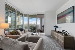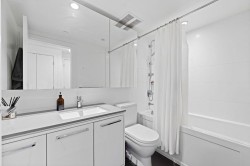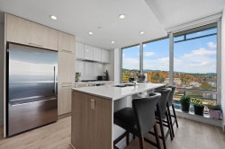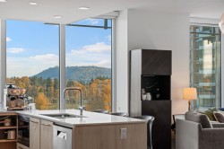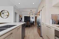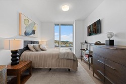 Discover this corner 2-bedroom residence offering bright multi-directional light and privacy. An open layout with wide windows showcasing city and mountain views, a modern kitchen with quartz counters, a gas cooktop, and a generous island, plus a welcoming dining area. The primary suite features ample closets and an ensuite with a walk-in shower, while the second bedroom is bright and flexible, paired with a full bath with a deep soaker tub. You get A/C, in-suite laundry, storage, underground parking, and a covered balcony with gas for BBQ. Residents enjoy the Denna Club’s state-of-the-art gym, 25m indoor pool, sauna, steam room, and lounge, offering resort-style comfort every day. All of this places you moments from trails, shops, and transit, making daily life effortless!