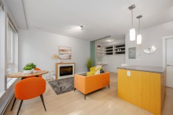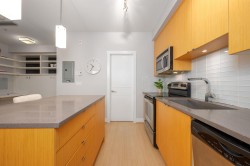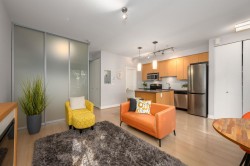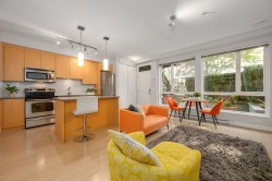 Enjoy urban living w/ this Townhome style studio steps to everything you need by foot! Situated in the 2011 built Seven35 complex, this home provides a unique offering – a modern, well-designed studio enjoying 457 sq ft of interior space, that almost doubles in size w/ a 180 sq ft walk-out patio – perfect for hosting, bbqs, & ideal for dog owners. The home features an open-concept layout w/ gourmet kitchen, living space w/ electric FP, 4 pc bath w/ soaker tub & bed/office w/ a murphy bed & flip down desk set up. The home also enjoys in-suite laundry, 1 parking w/ bike rack, storage locker, low maint fee, allows 2 dogs or cats (or 1 of each), & bldg amenities of a gym, bike maint rm, & garden. With an 88 walk-score, you have access to Cap Mall, Save-On, transit, & Mosquito Creek in minutes!