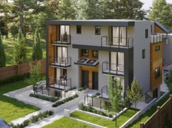 BUILDERS, DEVELOPERS & INVESTORS – PRIME Central Lonsdale opportunity! Includes plans for 5 townhomes w/ lock-off suites (8,670 sq ft total, units 1,675–1,810). Solid side-by-side duplex w/ 4 suites: two 3-bdrms w/ ensuites + 400 sf sundecks w/ mountain views, plus two 2-bdrm garden suites w/ yard access. Large flat 49.8x139.9 lot w/ lane, RT-1 zoning, OCP up to 1 FSR. Current rent ~$6K/mo. Rare offering—hold, rent, live in one side, or build new!