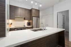 Peaceful 1-bdrm + den at “Destiny at Raven Woods,” offering 760 sq/ft of bright, stylish living w/ soaring 9’ ceilings & floor-to-ceiling windows framing private, greenbelt views. The open layout includes a chef-inspired kitchen w/ granite counters, s/s appliances, and bar seating, flowing to a dining/living area with linear fireplace and covered balcony—ideal for coffee or evening BBQs. The bedroom features serene outlooks, a walk-through closet, and semi-ensuite with soaker tub and glass shower. A versatile den adds space for office, nursery, or guests. Includes in-suite laundry, parking, and locker. Enjoy Club Destiny amenities: fitness centre, yoga studio, theatre, lounge, and more. Steps to trails, minutes to Deep Cove, Cates Park, skiing, golf, and marinas. Rentals and pets welcome.