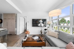 Top-floor stunner at The Green on Queensbury! This over-1,000 sq ft 2-bedroom + office home has only ever had one owner and feels like new, with a distinctive kitchen island, high-end appliances, and a covered deck with custom outdoor furniture and tiling that frames beautiful northeast views. You’ll get two rare side-by-side parking stalls wired for EV charging and access to great amenities including a gym and rentable guest suite, plus Moodyville Park— the best kids’ playground in North Van—right outside your door. Just a short stroll to breweries, restaurants, coffee shops, the SeaBus, and Lonsdale Quay, this home blends coastal luxury with everyday convenience in one of North Vancouver’s most vibrant communities.