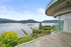 Exclusive Waterfront Mansion in Deep Cove! This extraordinary 10-bedroom, 12-bath waterfront estate in the coveted Dollarton area of Deep Cove offers panoramic, unobstructed views of the open water and surrounding mountains. Built with premium concrete and steel construction, this residence combines durability with timeless sophistication. Spanning 13,000 sqft., the interiors are designed for luxury living and entertaining, featuring expansive living spaces and higb-end finishes throughout. Outside, the beautifully landscaped grounds include a stunning outdoor swimming pool, private tennis court, and a private dock providing direct water access for boating or water sports. Experience the ultimate blend of modern elegance and natural beauty in this rare, one-of-a-kind property.