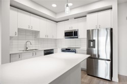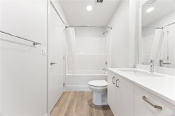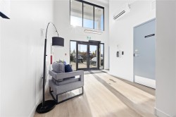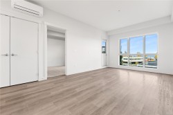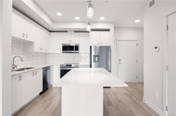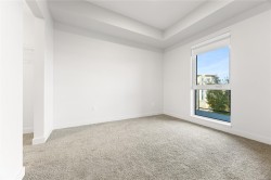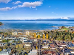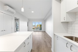 Welcome to Unit 209–120 Jensen Ave W, Parksville — a modern ocean-view 1-bed condo in the eco-conscious Mosaic complex (built 2023). This bright, open-concept home features 9-ft ceilings, and quality finishes throughout. The kitchen offers quartz countertops, undermount sink, subway-tile backsplash, and an island for extra workspace. Enjoy comfort with two wall A/C units (living area & bedroom) and peace of mind with smart water-leak sensors and an auto shut-off valve on the main line. The building includes an elevator for wheelchair access, EV-charging, and a dedicated storage unit. Perfectly located just steps to downtown shops, cafés, and the beach—coastal living at its best! All measurements approximate, verify if it is important. 2 Dogs or 2 Cats Allowed. Builder Warranty available.