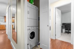 Welcome to Magnolia Gardens! Bright and spacious 2-bedroom + den corner unit with updated Zebra blinds, stainless steel appliances, upgraded washer/dryer, and a cozy fireplace. Enjoy a 320 sq. ft. wrap-around covered deck—great for relaxing or entertaining. Features 9' ceilings, laminate floors, and a stylish Maple kitchen with lots of natural light. Located in desirable Glenwood, close to schools, shopping, Coquitlam Centre, trails, transit, and the West Coast Express. Includes 1 parking and storage locker. Priced to Sell – Motivated Seller!