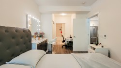 Welcome to LUMIERE, a NEWER DEVELOPMENT in the heart of Downtown Port Coquitlam!! Well laid out open concept 1 bedroom & den & 1 bathroom GROUND LEVEL unit!! Kitchen has quartz countertops, breakfast bar, stainless steel appliances & white shaker cabinetry w/under mounted lighting. Beautiful 12mm laminate flooring throughout with TJI silent floor system. 9' ceilings throughout for an open & airy feeling. Roughed In Central Vacuum, Smart Thermostat. Large 96sf covered PATIO for your entertaining. Close to transit, schools & Westcoast Express with Gates Park just a block away!! Walk to the new PoCo Recreation Centre!! Pet & rental friendly building. 2 Recreation Rooms for entertaining!! Wheelchair friendly. 1 parking stall included w/several bike rooms. 4 EV Charging Stations in building!!
